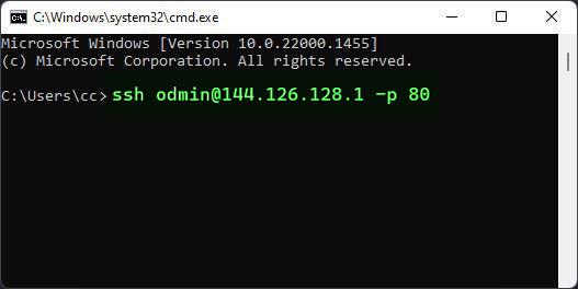 2. Enter ssh YOUR_USERNAME@IP_OF_YOUR_VPS -p 80 (or your -p PORT if you changed it)